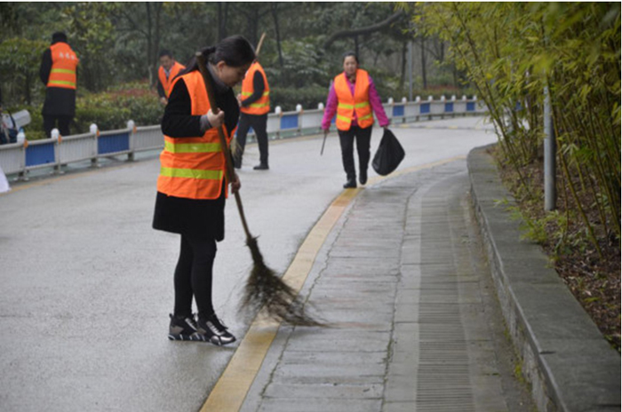大家不怕臟、不怕累、密切配合,對公園道路及綠化帶內(nèi)的落葉、雜草、垃圾等進(jìn)行了全面清理打掃,整條道路上洋溢著一派團(tuán)結(jié)協(xié)作、奮發(fā)向上的融洽氣氛。經(jīng)過2個多小時的緊張勞動,被打掃過的道路煥然一新,受到公園工作人員和過往群眾的一致好評。