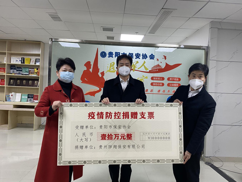 捐贈(zèng)儀式上,陳春生總經(jīng)理代表貴州陟翔保安有限公司向貴陽市保安協(xié)會(huì)捐贈(zèng)人民幣10萬元,用于支持抗擊新型冠狀病毒感染的肺炎疫情。羅越利副會(huì)長(zhǎng)代表貴陽市保安協(xié)會(huì)接受捐贈(zèng)并對(duì)貴州陟翔保安有限公司愛心之舉表示感謝。她指出,貴州陟翔保安有限公司是一個(gè)有社會(huì)責(zé)任感的企業(yè),此舉為貴陽市保安行業(yè)樹立了榜樣,帶了個(gè)好頭,希望全市保安行業(yè)向貴州陟翔保安有限公司學(xué)習(xí),積極行動(dòng)起來,奉獻(xiàn)愛心,為打贏這場(chǎng)疫情阻擊戰(zhàn)貢獻(xiàn)力量。